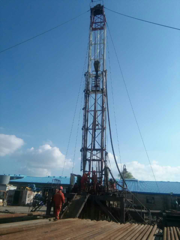 圖片新聞:公司院內(nèi)的地?zé)嵩囼?yàn)一井,下套管施工(2017年史文全報(bào)道)